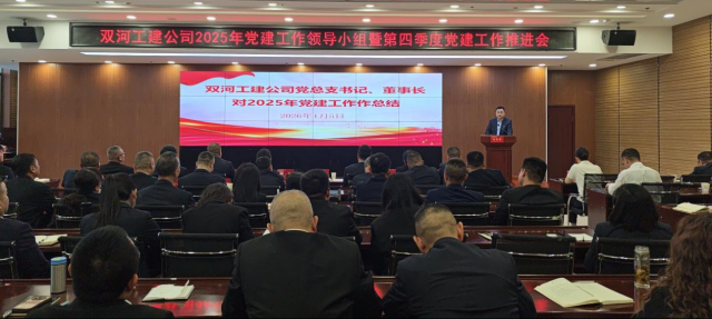 为压实基层党组织书记管党治党政治责任,持续以高质量党建引领公司各项工作提质增效,2026年1月5日,城建集团双河工建公司召开2025年党建工作领导小组暨第四季度党建工作推进会。公司党总支委员、高管、机关职能部门负责人、各分公司班子成员及党员代表共计70余人参加会议。