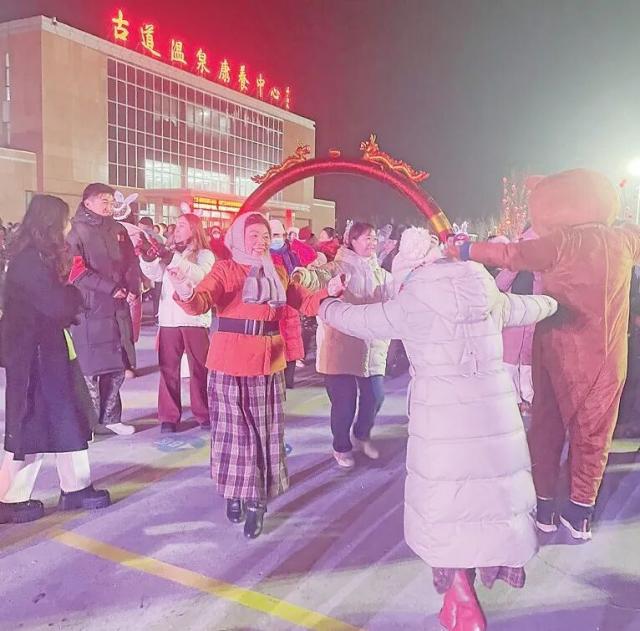 1月1日,“暖泉相约·乐雪双河”第五师双河市冰雪艺术季元旦系列活动喜迎八方来客。在当晚的篝火晚会上,来自全国各地的1000余名游客在双河古道温泉共同欢庆新年的到来。