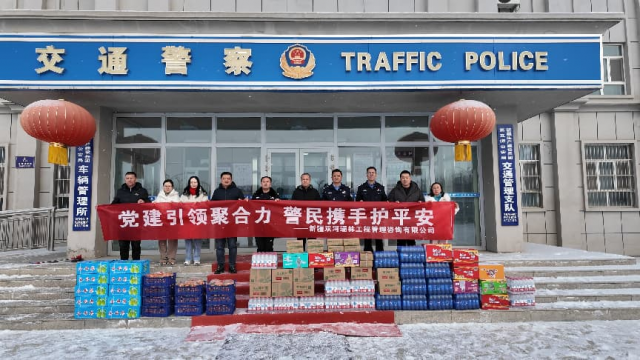 1月9日,在第六个中国人民警察节来临之际,双河城建集团瑞林管理咨询公司的党员代表们带着精心准备的节日慰问品,走进第五师双河市公安局交通管理支队,与坚守岗位的民辅警共同开展“党建引领聚合力警民携手护平安”主题慰问活动,向长期奋战在交通管理一线的民辅警致以节日的祝福和诚挚的敬意。