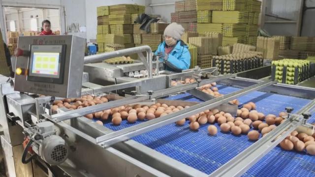 寒冬腊月,生产正酣。1月20日,新疆北疆禽业养殖有限责任公司蛋鸡养殖基地,自动化流水线高速运转,工人们分工协作、各司其职,正有条不紊地开展鸡蛋挑拣、分级、打包等作业,车间内一派热火朝天的繁忙景象。
