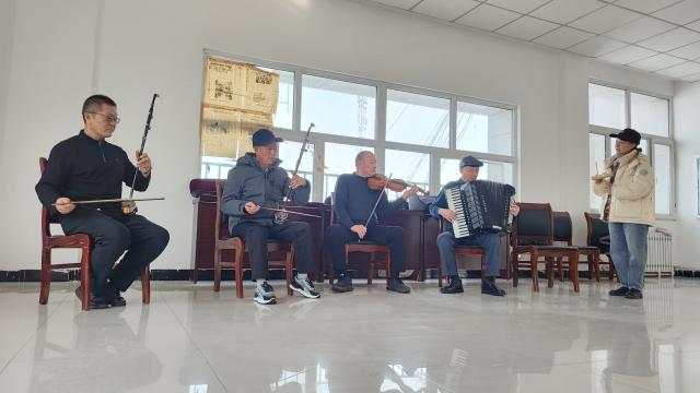 不远处的乐器排练区,几位退休老人正聚在一起,或拉二胡、或弹电子琴,悠扬的旋律在室内回荡。这是由八十四团退休职工自发组成的乐器爱好团队,他们利用冬闲时间组织排练,用音乐点亮寒冷季节。
