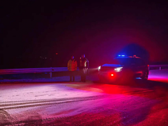 清理过程中,执法人员不怕脏、不怕累,与现场人员默契配合,弯腰捡拾、集中归集、全面清扫。在零下十六七度的严寒天气里,他们的身影在路面上来回穿梭,手上沾满了灰尘,身上落满了棉絮,却始终没有停下手中的动作,心中只有一个信念:尽快清理完毕,让群众安全通行。经过近2小时的紧张忙碌,散落路面的棉籽被彻底清理干净,事故路段恢复正常通行秩序。执法人员并未就此停歇,而是对现场进行了全面细致的检查,确认路面无任何残留、无安全隐患后,才收起警示标志,继续投入到夜间巡查工作中,用坚守诠释为民初心。此次应急处置,不仅保障了群众出行畅通,更用温情服务温暖了民心,是第五师交通运输综合行政执法支队践行“保安全、保畅通、优服务”职责使命,深入开展为民办实事工作的生动缩影。