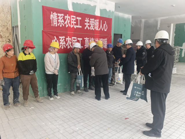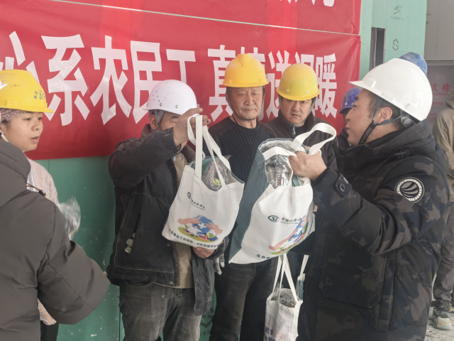 随后,慰问组为工人们逐一发放了宣传册、实用水杯、慰问食品等物资,每一份物资都承载着对一线建设者的深切关怀,切实让工人们在寒冬里感受到了党和政府的温暖与牵挂。慰问期间,针对建筑工人最关心、最直接、最现实的权益保障和安全问题,两部门工作人员结合典型案例,用通俗易懂的语言,向工人们详细讲解了欠薪投诉维权渠道、工伤预防知识和施工安全规范三大核心内容。宣讲过程中,工作人员还现场解答了工人们提出的各类疑问,对大家关心的薪资拖欠处理、工伤报销、安全防护细节等问题逐一耐心回应,确保政策知识入脑入心,切实为工人们排忧解难。同时,工作人员还向工人们发放了政策宣传册,方便大家课后进一步学习了解相关知识,真正实现“政策送上门、服务零距离”。