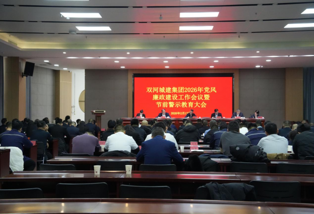 岁序更替迎新春,廉洁自律守底线。2月12日,双河城建集团召开2026年党风廉政建设工作会议暨节前警示教育大会,集团领导班子成员、中层管理人员及关键岗位人员共计141人参加会议。会议以习近平新时代中国特色社会主义思想为指导,结合八届兵团纪委五次全会和师市纪委十一届六次全会部署2026年重点任务,系统总结2025年党风廉政建设工作成效,为集团高质量发展筑牢坚实纪律屏障。