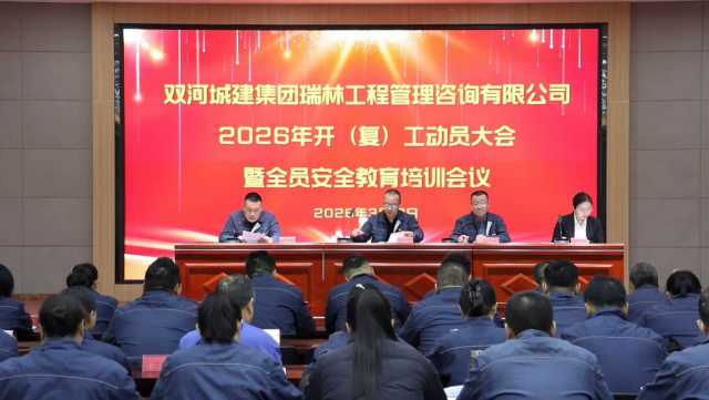 3月10日,双河城建集团瑞林公司以“守安全、促生产、开新局”为主题,召开2026年开(复)工动员大会暨全员安全教育培训会议,全面部署年度复工复产与安全生产工作,为全年项目建设起好步、开好局。