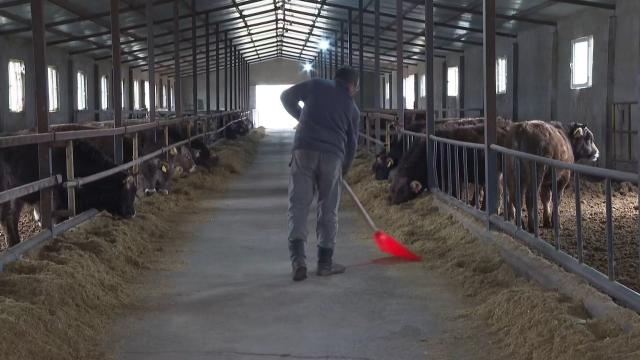 靳宝东是该合作社社员,这次他一共在新疆天莱养殖有限公司领养了400头小牛,均为褐牛。企业供牛、合作社按企业标准统一饲喂管理的模式,给他吃上了“定心丸”。依照合同约定,等到这批牛养足5个月后,企业将回购成品牛。养殖收入有了保障,他干劲十足。而此次,新疆天莱养殖有限责任公司将有800头肉牛来到合作社“托养”。