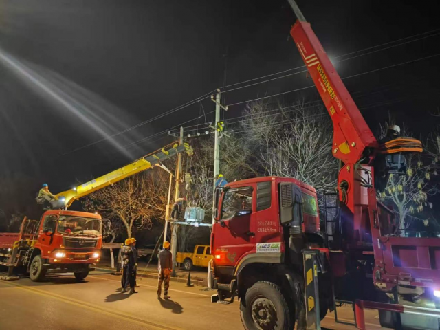 据悉,长江路3号公变因车辆意外撞断电杆,导致周边片区突发停电,恰逢夜间用电低谷时段,为最大限度减少对居民白天生产生活用电的影响,建国路供电所与西线检修所迅速启动应急抢修预案,果断决定开展夜间抢修作业,以“深夜作业”换取“日间无忧”,全力守护群众用电“零感知”体验。