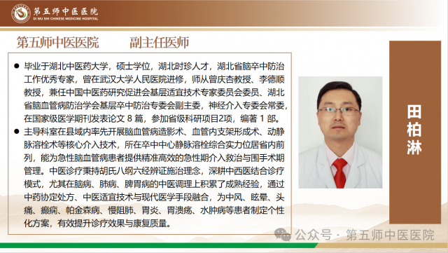 田柏淋在脑病、肺病、脾胃病、老年病的中医调理上积累了丰富的临床经验。擅长将中药协定处方、中医适宜技术与现代医学手段有机融合,为中风、眩晕、头痛、癫痫、帕金森征、慢性阻塞性肺疾病、胃炎、胃溃疡、水肿病等患者制定个性化方案,显著提升临床治疗效果与患者康复质量,在湖北当地医疗卫生系统及群众中享有良好的口碑和较高的行业声誉。此次他自愿奔赴边疆、扎根第五师中医医院,不仅充实了医院重点专科的人才力量,更以实际行动搭建起鄂疆两地中医诊疗技术交流的桥梁,将长江之畔的中医诊疗智慧,传递到双河之畔,惠及更多边疆各族群众。