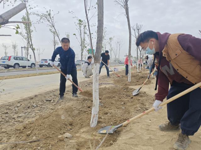 活动现场,党员干部们热情高涨、分工协作,默契配合,有的挥锹挖坑、有的扶苗正树、有的培土压实,严格遵循栽种标准,力求“栽一颗、活一颗”,各个环节井然有序,一片繁忙的景象。