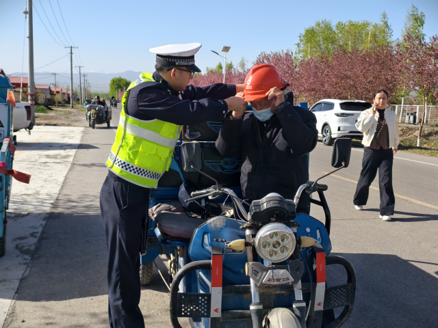 行动中,执勤民警在团场主干道、连队路口、集市周边等重点路段设置检查点,采取定点检查与流动巡查相结合的方式,对过往摩托车、电动车进行逐一排查。针对部分群众存在的“带而不戴、戴而不扣”、无牌驾驶等问题,坚持“教育与处罚并重、劝导与整治同步”原则,现场纠正违法行为,讲解安全知识。
